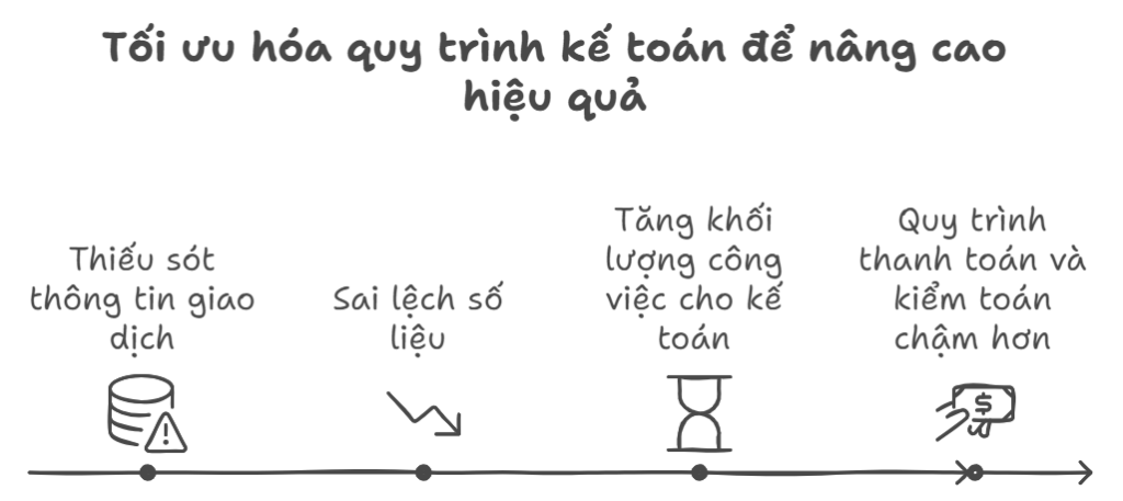 - Tăng khối lượng công việc: Kế toán phải tốn nhiều thời gian và công sức hơn để tìm ra nguyên nhân và khắc phục sai sót, làm chậm quá trình thanh toán và kiểm toán.