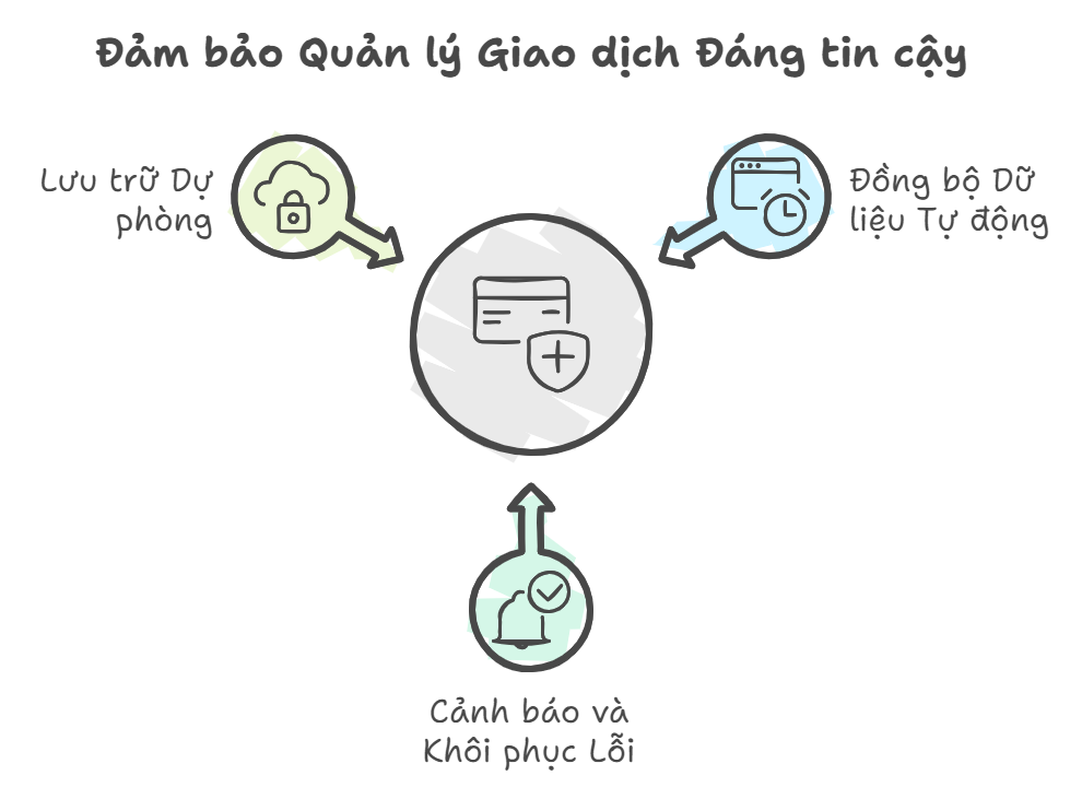 - Lưu trữ dự phòng: Dữ liệu giao dịch được lưu trữ tại các điểm dự phòng, đảm bảo không bị mất trong quá trình truyền dữ liệu.