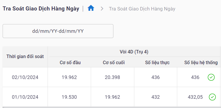 - Thời gian đối soát: Thời gian cụ thể của mỗi lần đối soát hàng ngày.