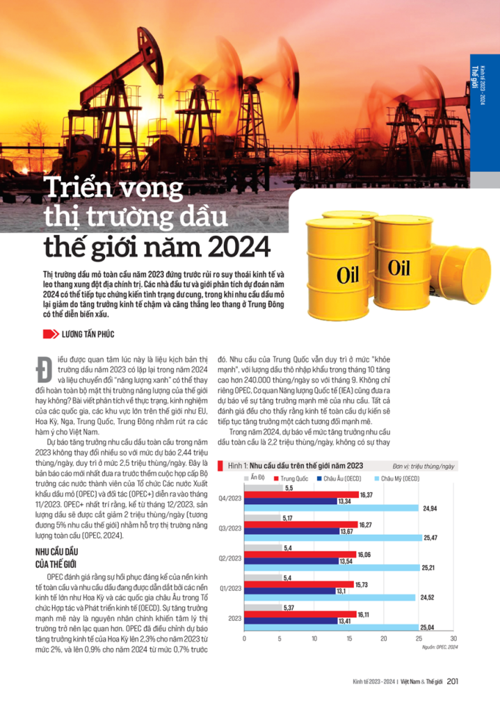 Thị trường dầu mỏ toàn cầu năm 2023 đứng trước rủi ro suy thoái kinh tế và leo thang xung đột địa chính trị. Các nhà đầu tư và giới phân tích dự đoán năm 2024 có thể tiếp tục chứng kiến tình trạng dư cung, trong khi nhu cầu dầu mỏ lại giảm do tăng trưởng kinh tế chậm và căng thẳng leo thang ở Trung Đông có thể diễn biến xấu…